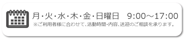 障がいのある就学児童・生徒の放課後及び長期休日時に、創作活動やレクリエーションなどの小集団活動を提供し、 友達と楽しく過ごす経験が出来るよう支援します。また行事などを通して社会体験を促進します。